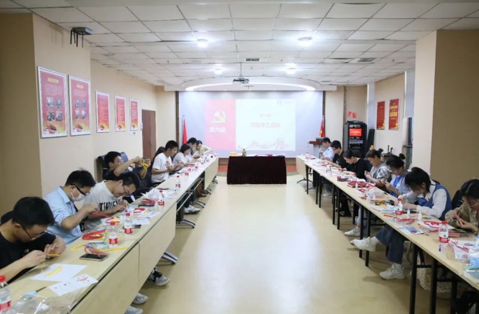 活动的最后,党员、团员代表们通过衍纸的艺术形式制作了党旗、国旗、初心等手工作品,大家齐心协力,团结协作,你卷纸我勾勒他粘贴,一双双巧手把红色纸条变成漂亮的纸卷,组成一个个美丽的图案,在制作的过程中感受非物质文化遗产艺术的魅力,将爱党爱国的真情实感凝结在一幅幅衍纸作品中。