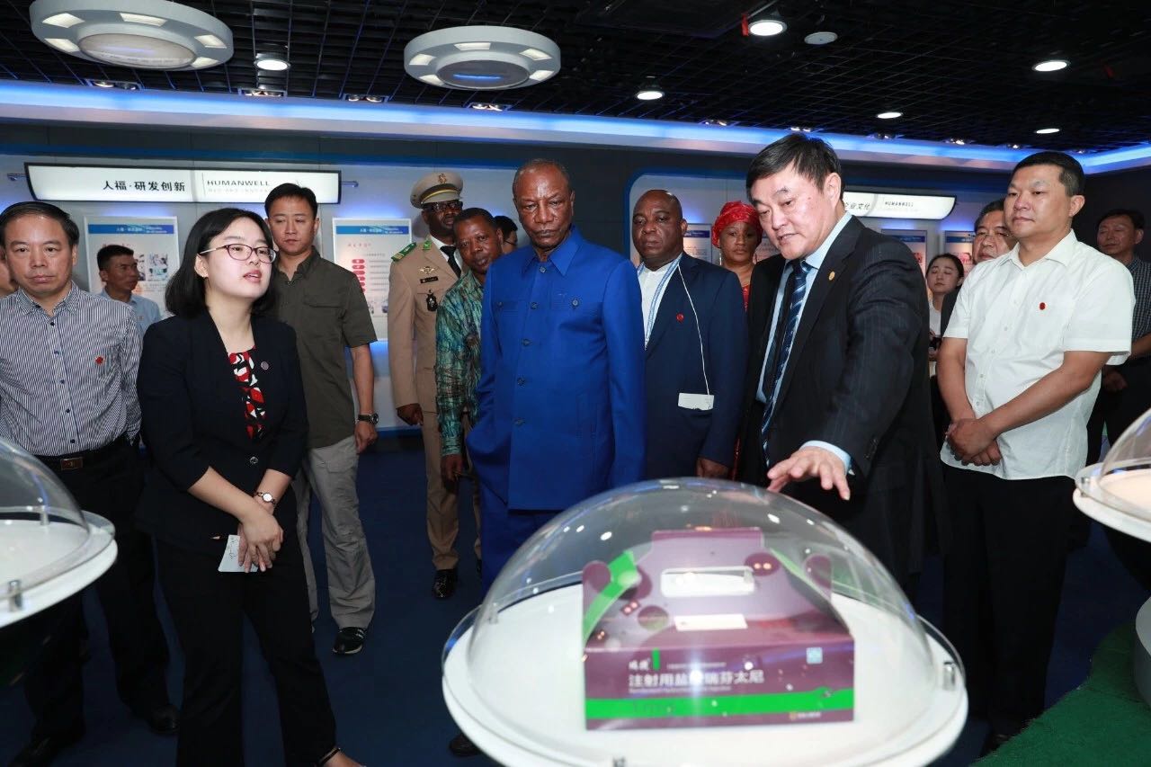 人福医药集团总裁、宜昌人福药业董事长李杰,宜昌人福药业总裁杜文涛,副总裁、总工程师李莉娥,副总裁于群陪同接待。在一楼展厅,孔戴总统详细了解了企业历史沿革、园区建设、科研实力、核心产品等方面情况,人福医药集团总裁李杰介绍说,针对非洲市场,人福医药在马里和埃塞俄比亚都建有工厂,生产当地人民需要的常用药物。我们曾到几内亚做过考察,那里的海港设施很发达。孔戴表示,除了海港,几内亚还有良好的区位优势,当前正在建设经济特区,将引进优质的中国企业,欢迎人福药业进驻。