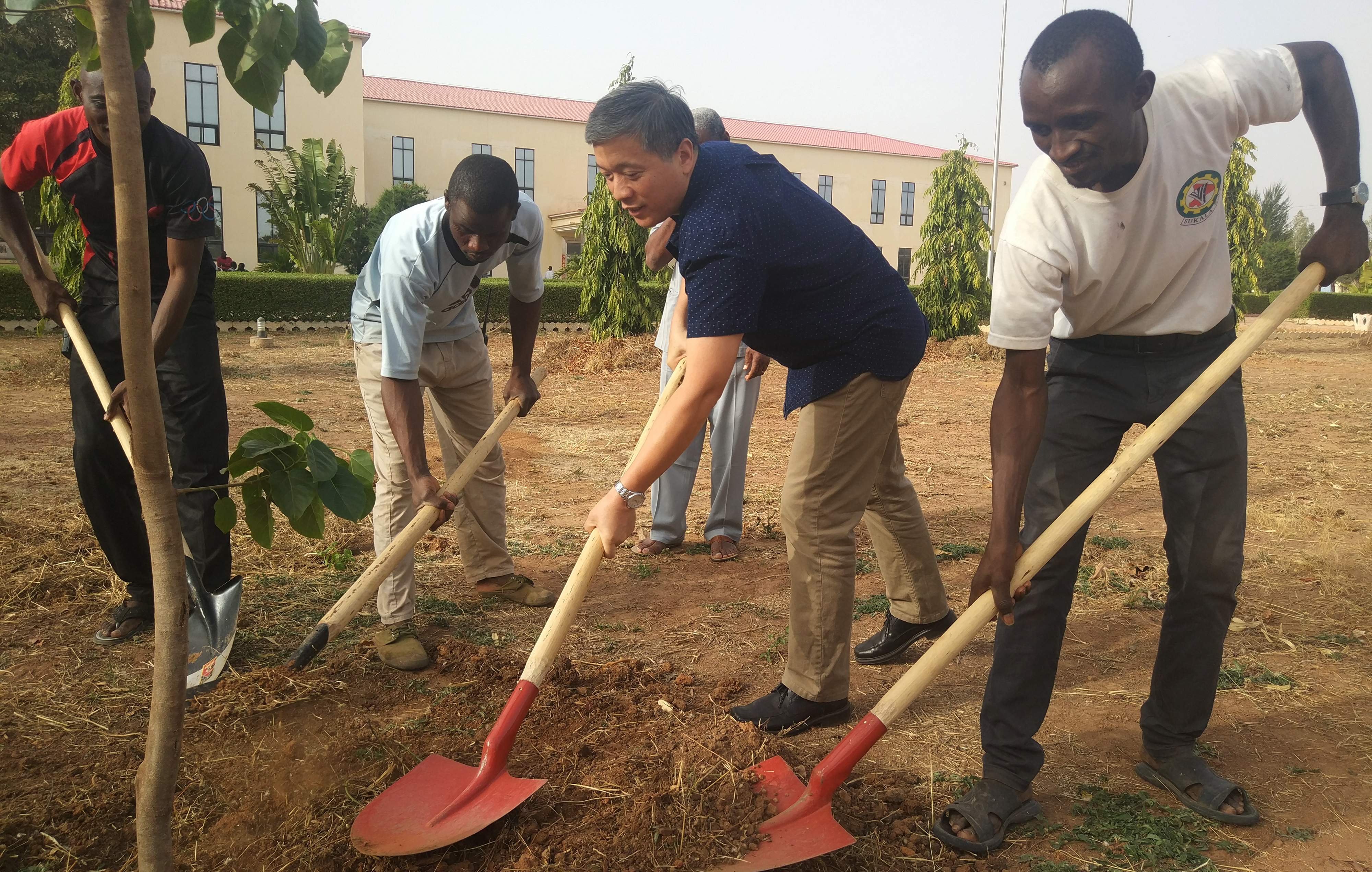 调研期间,朱立英大使顶着高温,深入公司园区及车间。马里当地员工深切地对朱立英大使说:2012年,在我们马里最困难的时候,是中国和人福选择了与我们站在一起,为我们建设了一座美丽的现代化工厂,帮助我们提高了制药水平,解决了大量的就业问题,并为我们培养了人才,我们感谢中国,感谢人福。朱立英大使勉励企业要继续“弘扬人福精神,造福非洲人民”,并亲手植下了象征“一带一路”精神的希望之树。