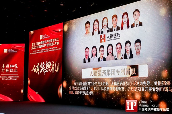 2月11日,“第十三届中国知识产权新年论坛暨2023中国知识产权经理人年会”及颁奖盛典在北京召开。本届活动以“善用机遇 行稳致远”为主题,全球知识产权行业大咖、政府代表、知名法官、专家学者及企业知识产权经理人等参加盛会。在颁奖盛典上,人福医药集团专利团队获评“2022年度中国杰出企业知识产权管理团队”,知识产权经理刘哲获评“2022年度中国杰出知识产权经理人/优秀奖”。