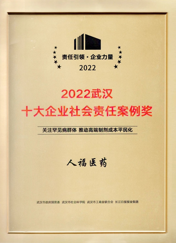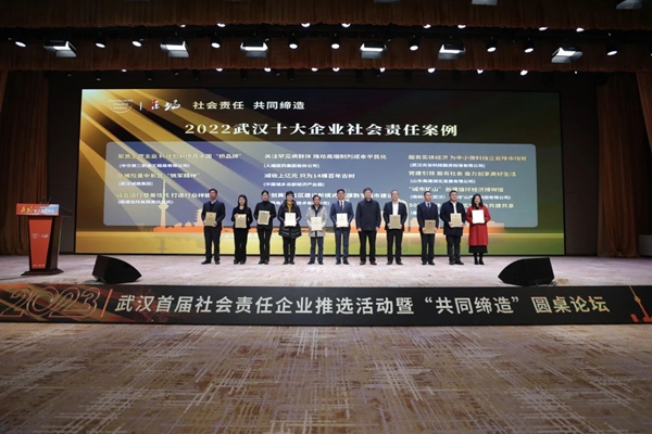 2月18日,“武汉首届社会责任企业推选”活动颁奖仪式在汉举行。人福医药集团等10家企业获评“2022武汉十大社会责任案例”奖,15家企业获评“2022武汉履行社会责任优秀企业”奖。