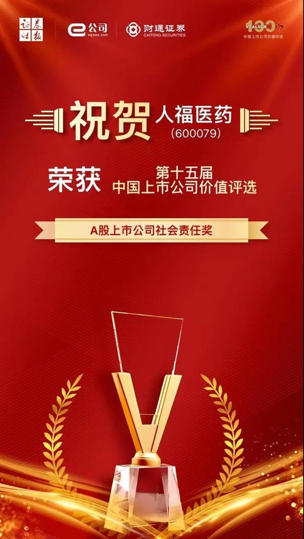 9月28日,由证券时报社主办、财通证券特约协办的“第十五届中国上市公司价值评选”榜单揭晓,人福医药集团荣获“A股上市公司社会责任奖”。