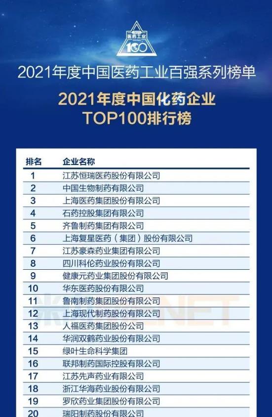 7月12日,在米内网2022米思会现场,2021年度中国医药工业百强系列榜单正式发布。榜单分为“中国化药企业TOP100排行榜”“中国中药企业TOP100排行榜”等5大子榜单,人福医药集团位列中国化药企业TOP100排行榜第13位。